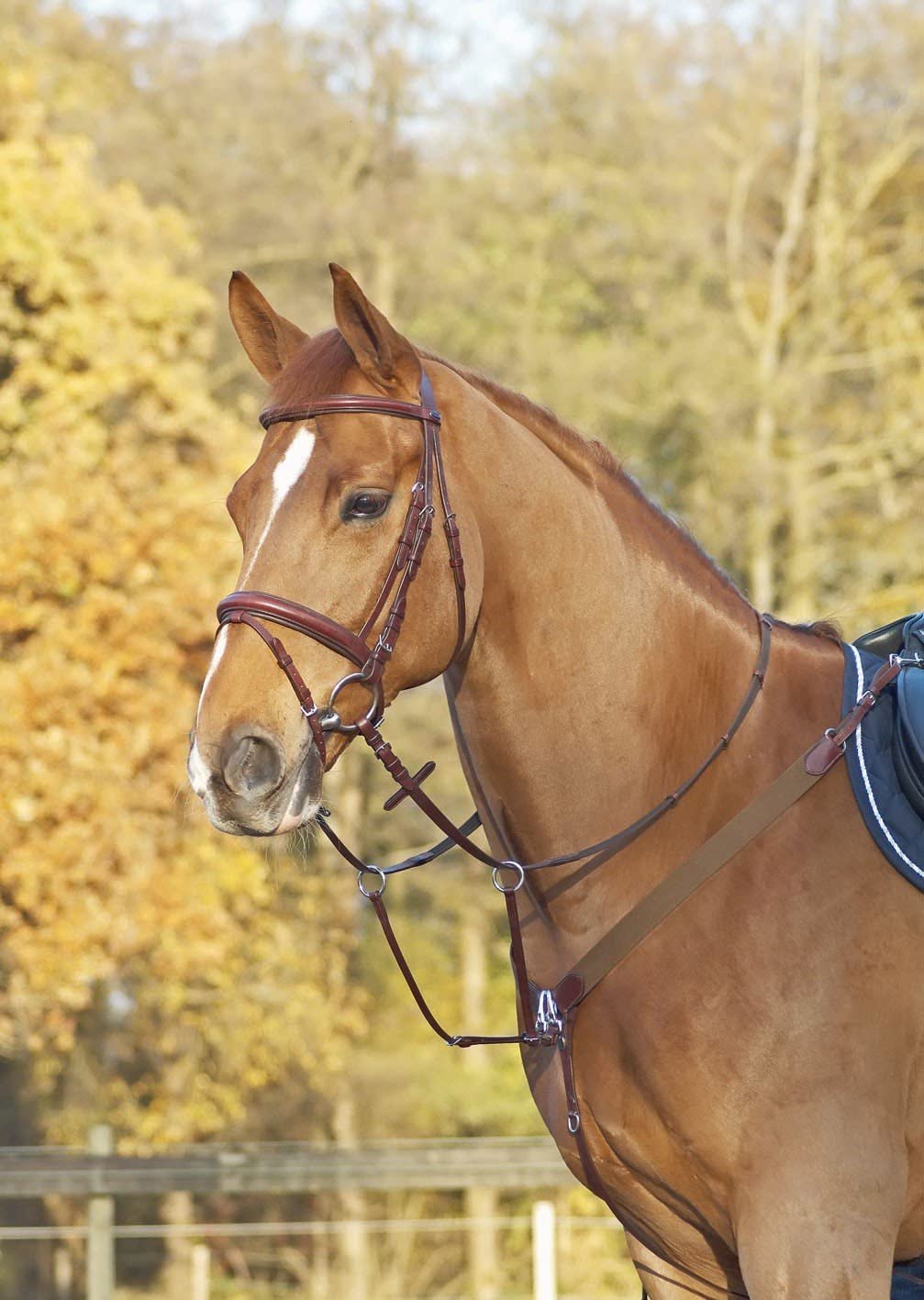 - Vorderzeug passend zur Trense CAMBRIDGE in derselben Lederqualität mit integrierter Martingalgabel